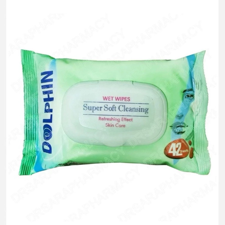 دستمال مرطوب دلفین حاوی گلیسیرین بوده و برای انواع پوست به ویژه پوست های حساس مناسب است . این محصول مناسب برای پاک کردن آرایش چشم و لب ها و همچنین آرایش های ضدآب است . هربسته از دستمال مرطوب دلفین شامل 42 عدد دستمال می باشد . این دستمال دارای PH متناسب با پوست می باشد و فاقد صابون و پارابن است در نتیجه پس از استفاده ، حالت لیزی و صابونی روی پوست به وجود نمی آورد . بهتر است بدانید استفاده از دستمال مرطوب به دلیل نرمی و لطافتی که دارد ، بسیار بهتر از دستمال کاغذی معمولی و حتی پنبه عمل خواهد کرد ؛ زیرا نه تنها پوست را تمیز میکند ، بلکه ضمن جلوگیری از خشکی پوست ، نرمی و لطافت پوست را هم به همراه دارد .