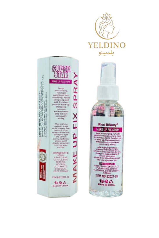 اسپری فیکس آرایش Kiss Beauty Super Star با فرمولاسیون سبک و آبرسان، به تثبیت آرایش شما کمک کرده و باعث میشود میکاپ برای ساعات طولانی بدون تغییر باقی بماند. این محصول با خاصیت مرطوبکنندگی و شادابکنندگی پوست، علاوه بر افزایش ماندگاری آرایش، طراوت و تازگی را به پوست شما هدیه میدهد.