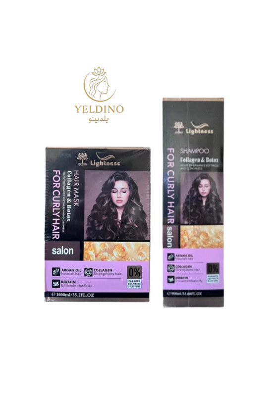پکیج تخصصی مراقبت از موهای فر لایتنس(شامپو موهای فر حاوی کلاژن و بوتاکس حجم 900 میل،ماسک موی مخصوص موهای فر حجم 1000 میل)